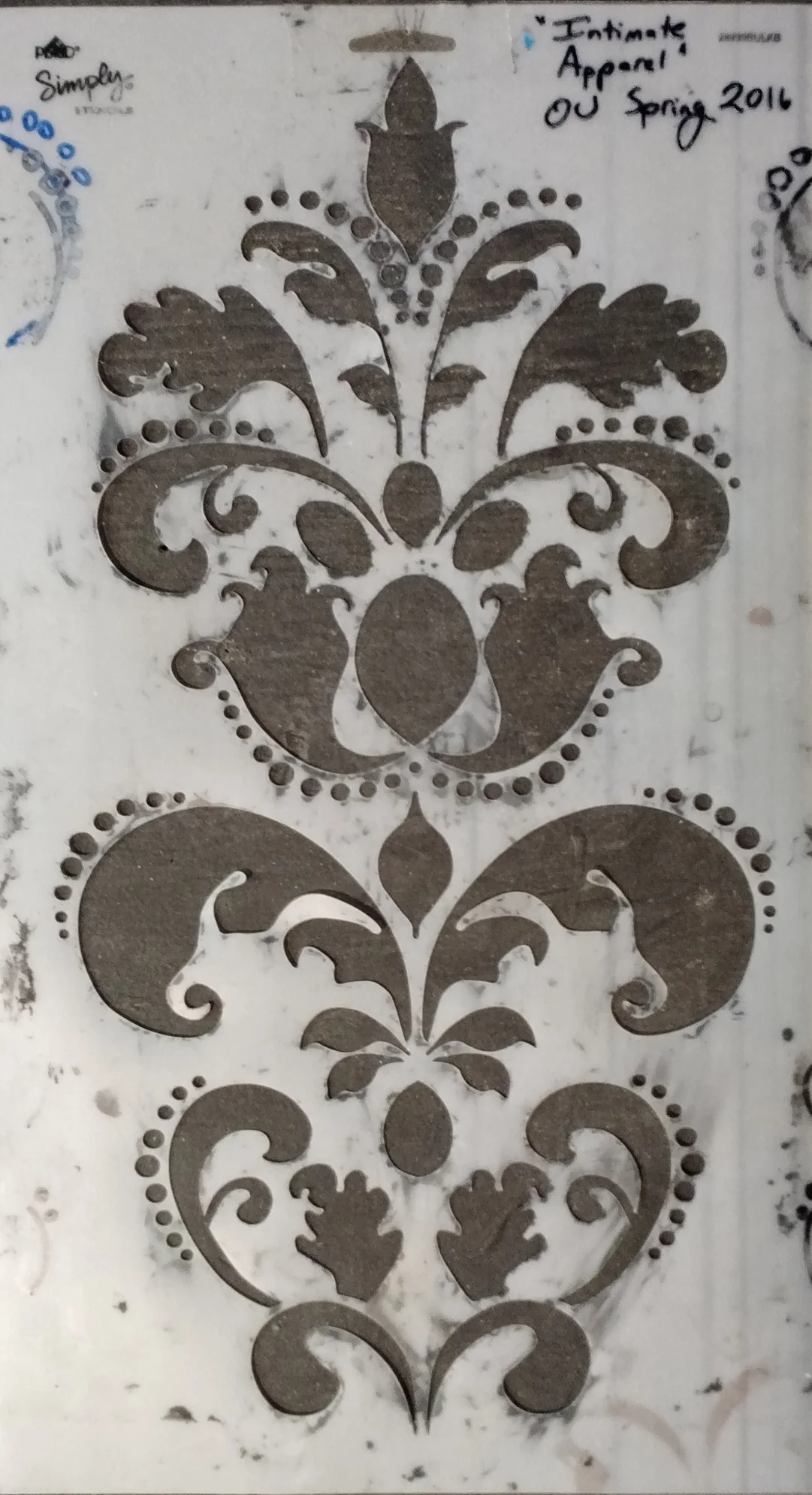 For this design, most of the walls were translucent so special care was needed when painting them. The walls with wallpaper were the most labor intensive. The base colors were applied with a HVLP gun and brush. I then created the stencils on a vinyl cutter, making sure the pattern repeated correctly.